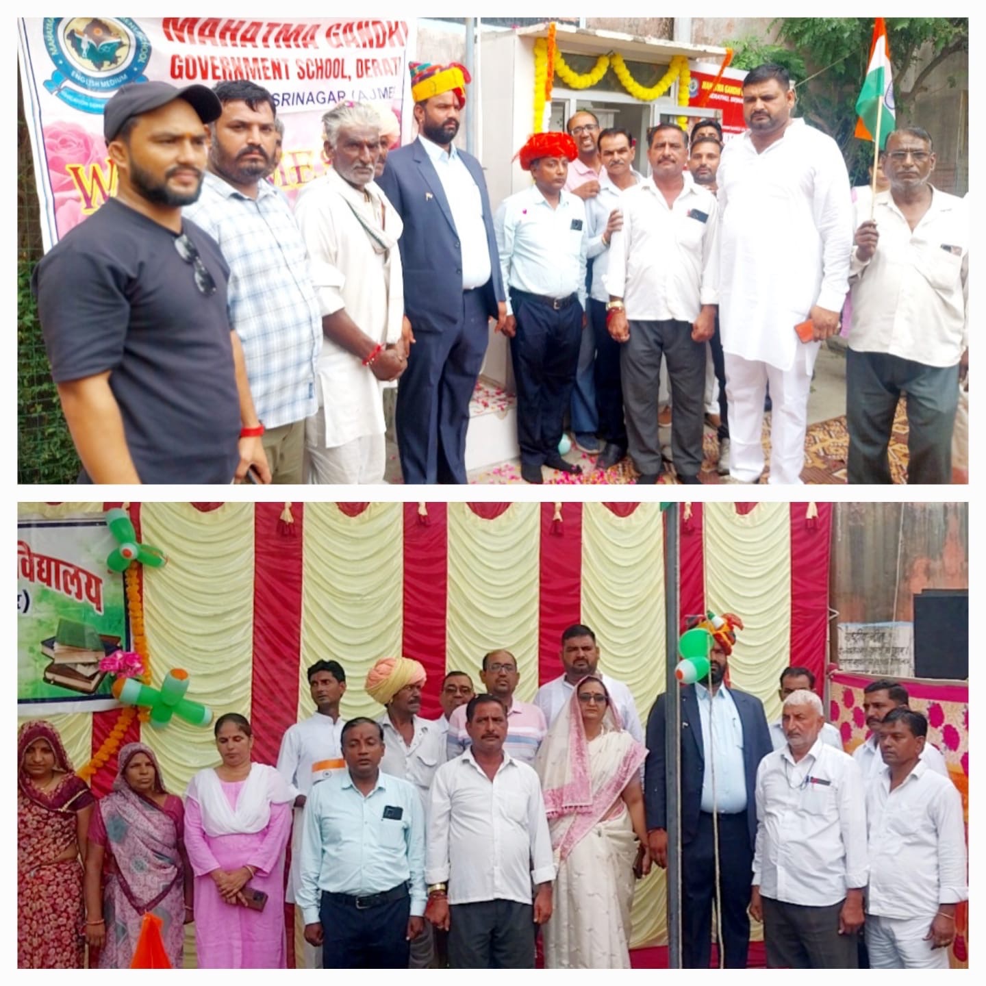 अजमेर। नसीराबाद के निकटवर्ती देरांठू कस्बे में राजकीय उच्च माध्यमिक विद्यालय व महात्मा गांधी अंग्रेजी माध्यमिक विद्यालय में 79 वा स्वतंत्रता दिवस समारोह धूमधाम और हर्षोल्लास के साथ मनाया गया । राजकीय उच्च माध्यमिक विद्यालय में कार्यक्रम का शुभारंभ मुख्य अतिथि सरपंच विजेंद्र सिंह राठौड़ तथा संस्था प्रधान सुषमा सोनी के कर कमलों से ध्वजारोहण कर किया गया । स्वतंत्रता समारोह में विद्यार्थियों ने एक से बढ़कर एक देश भक्ति गीतों पर शानदार प्रस्तुतियां दीं।