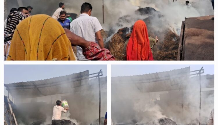 देरांठू में एक किसान के बाड़े में लगी आग, आग से कई ट्राली चारा जलकर हुआ राख