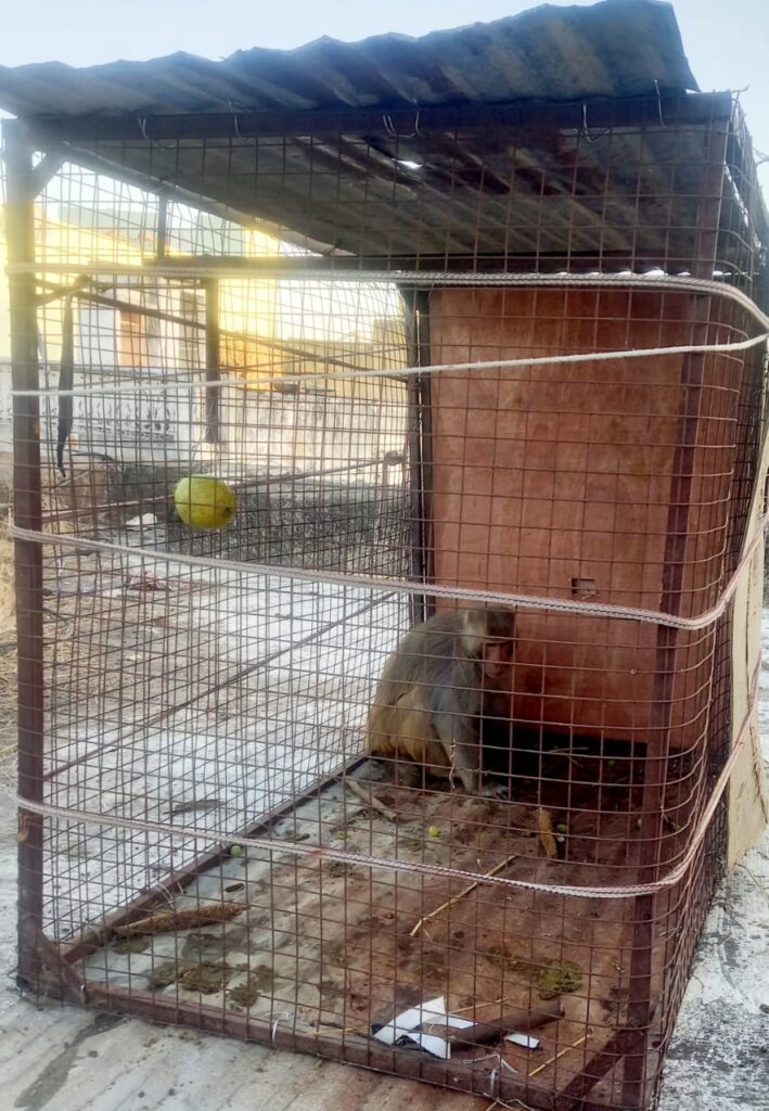 देरांठू मे उत्पाती बन्दर हुआ पिजंरे मे कैद युवाओं की टीम ने बनवाया था पिजंरा