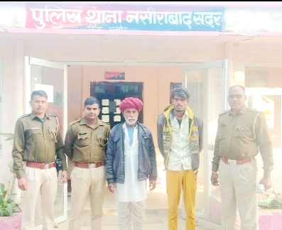 अजमेर । नसीराबाद सदर थाना मे 27 दिसम्बर को विमला (24) पत्नी सूरजकरण गुर्जर , निवासी देवपुरा ने रिपोर्ट दर्ज कर बताया कि देवपुरा निवासी ही गोलू (50) पुत्र मेवा गुर्जर व शिवराज (24) पुत्र गोलू गुर्जर ने घर मे घुसकर कुल्हाड़ी से जानलेवा हमला किया व लज्जा भंग करने का प्रयास किया । जिस पर पुलिस अधीक्षक अजमेर चूनाराम जाट , अतिरिक्त पुलिस अधीक्षक केकडी घनश्याम शर्मा , नसीराबाद वृत्ताधिकारी पूनम भरगड के सुपर विजन मे थानाधिकारी नसीराबाद प्रभातीलाल व सहायक उपनिरीक्षक भोमसिंह के नेतृत्व मे गठित टीम के कास्टेबल हेमन्त व विश्वास ने मुखबिर की सूचना पर ग्राम देवपुरा मे आये दोनो आरोपीयो को गिरफ्तार कर नसीराबाद न्यायालय मे पेश किया । जिस पर न्यायालय ने आरोपीयो को जेसी भेजने के आदेश दिए ।