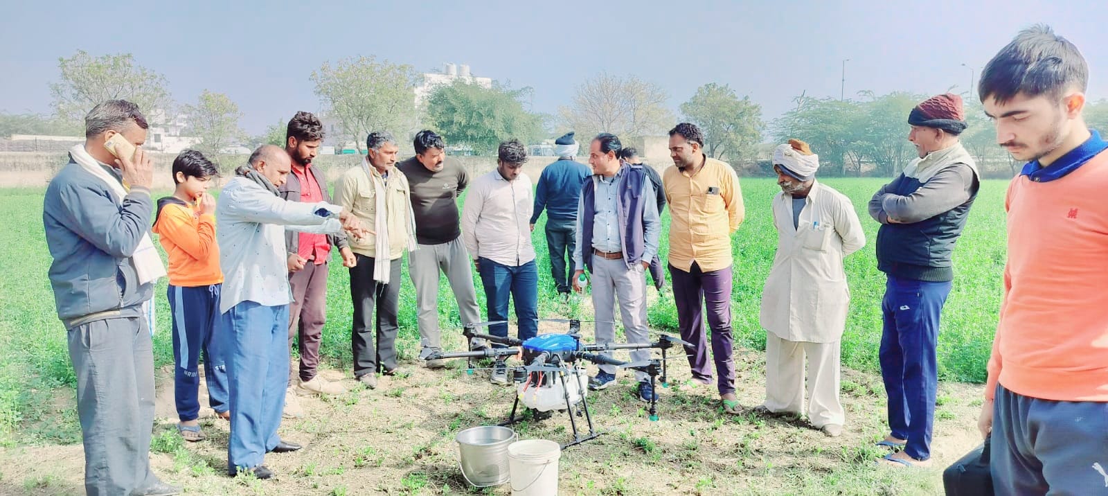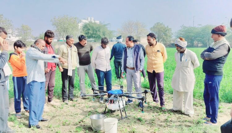 तिहारी में कृषि विभाग की और से ड्रोन के माध्यम से नेनो यूरिया छिड़काव का किया प्रदर्शन