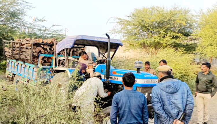 रामपुरा के हनुवन्तिया रोड पर देशी बंबुल काट रहे थे , पुलिस की गाडी देख ट्रेक्टर छोडकर भागे बंबुल चोर