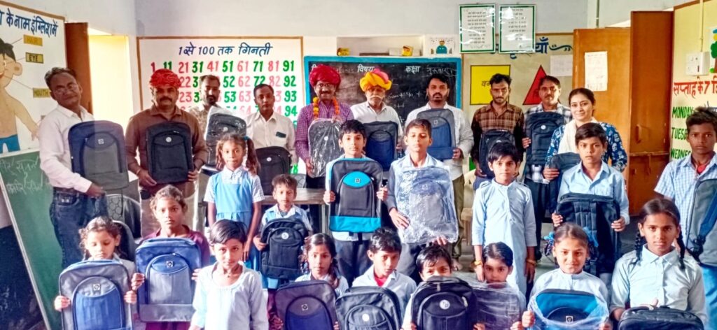 देरांठू स्थित राजकीय प्राथमिक विद्यालय माताजी का खेड़ा के विधार्थियों को भामाशाह राठौड़ ने भेंट किए स्कूल बैग