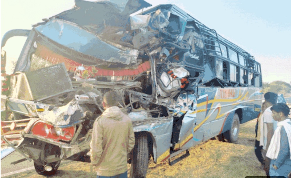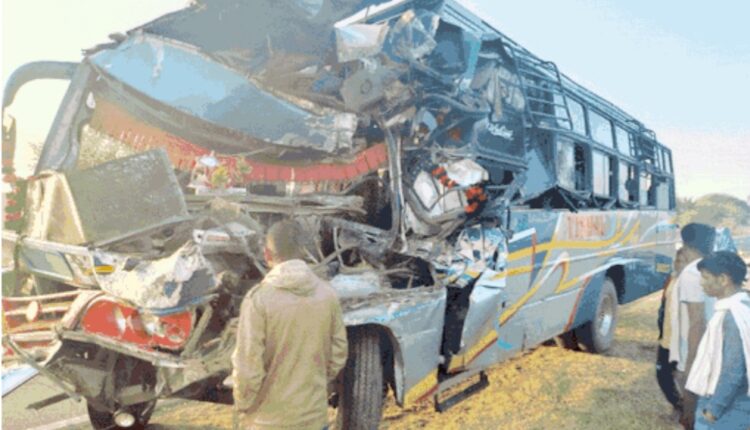 ट्रक में घुसी श्रद्धालुओं से भरी बस, 4 की मौत:धार्मिक यात्रा पर निकले थे, गांव से निकलते ही एक्सीडेंट; 18 लोग घायल