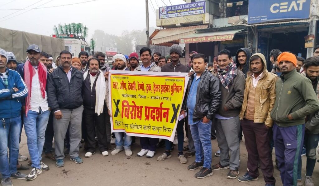अजमेर । हिट एंड रन कानून का विरोध पूरे देश में हो रहा है। ऐसे में आम लोगों को काफी परेशानियों का सामना करना पड़ रहा है। लोगों को दुध, सब्जी और पेट्रोल-डीजल खरीदने के लिए लंबी – लंबी लाइनों में लगाना पड़ रहा है। केंद्र सरकार के नए हिट एंड रन कानून के खिलाफ ट्रक, डंपर और बस चालकों की हड़ताल दूसरे दिन भी जारी है और ड्राइवर इस मांग को लेकर अब सड़कों पर उतर आए हैं। बताया जा रहा है कि करीब 25 लाख ट्रकों के पहिए थम गए है। राजस्थान, यूपी, एपी, हरियाणा, जम्मू-कश्मीर, महाराष्ट्र, गुजरात, छत्तीसगढ़, पंजाब और उत्तराखंड में अब हालात बिगड़ सकते हैं। कई राज्यों में प्रदर्शन की वजह से पेट्रोल-डीजल, गैस और सब्जी समेत रोजाना की जरुरते काफी प्रभावित हुई हैं।