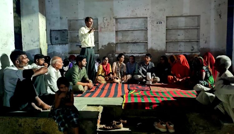 सोमवार को रात्रि में कस्बे में हथाई पर चौपाल लगाकर चौपाल प्रभारी पंचायत समिति से महिला बाल विकास अधिकारी शैलेन्द्र मथुरिया ने उपस्थित सभी महिला पुरुषों को बताया की आने वाले विधान सभा चुनाव में 18 वर्ष से ऊपर की आयु वर्ग के सभी मतदाताओं को वोट जरूर करना है।