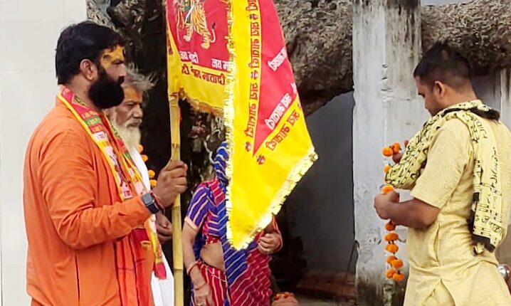 अजमेर । नसीराबाद के निकटवर्ती ग्राम देरांठू के सरपंच विजेंद्र सिंह राठौड़ अपनी मनौकामना के लिए सान्दोलिया स्थित माताजी के दर्शन हेतू अपनी टीम के साथ पैदल गाजे बाजे के साथ निकले । यात्रा के पूर्व बगीची बालाजी मन्दिर पर सरपंच राठौड़ को आचार्य पंडित पवन दाधीच ने पूजन करवाया । राठौड़ ने मन्दिर मे उपस्थित संत श्री रामदास जी महाराज का आशीर्वाद लिया । वही राठौड़ के साथ जा रही टीम को ग्राम वासियो ने फूल माला पहनाकर ,गाजे बाजे से विदा किया ।