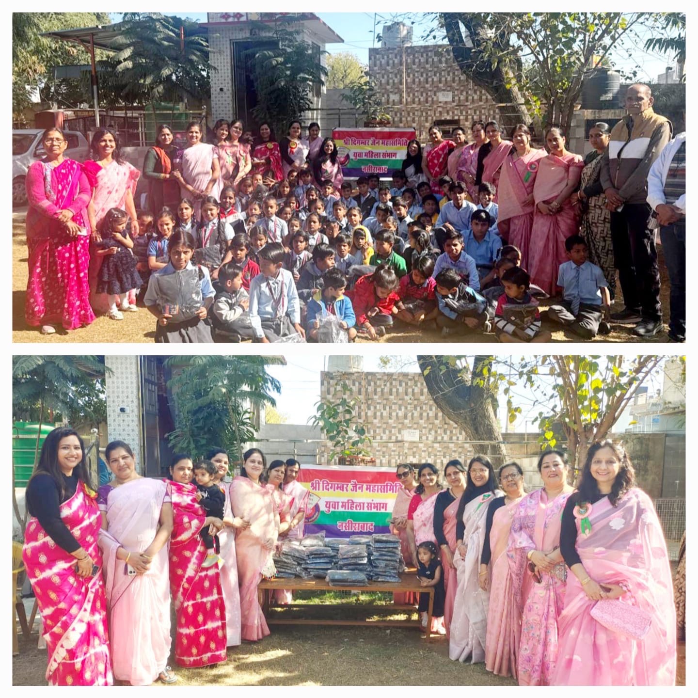 दिगम्बर जैन महिला महासमिति नसीराबाद ने खाटोओली विधालय के गरीब एवं जरुरतमंद 74 बच्चों को स्वेटर किए वितरित