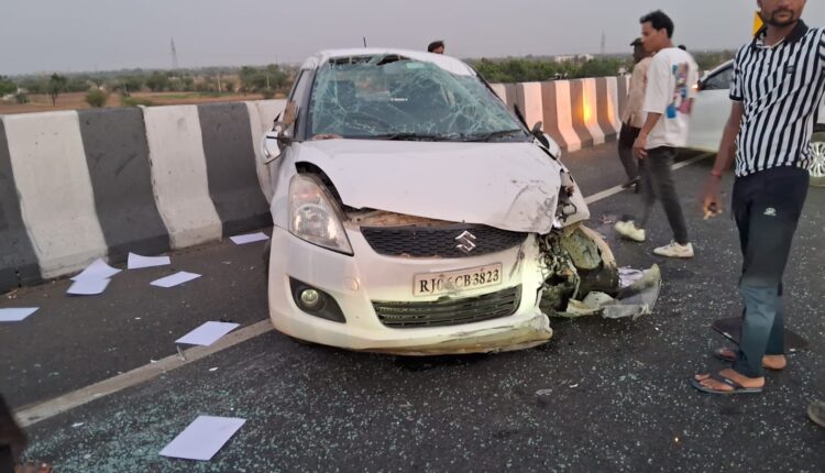 नसीराबाद राष्ट्रीय राजमार्ग 48 के देरांठू पुलिया पर पलटी तेज स्पीड कार, चालक बाल बाल बचा
