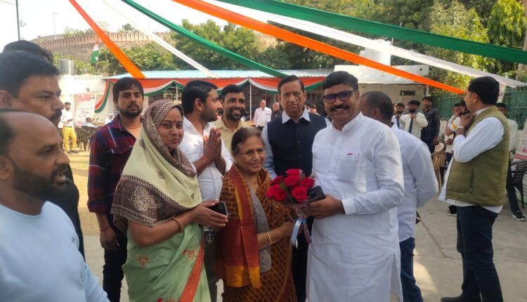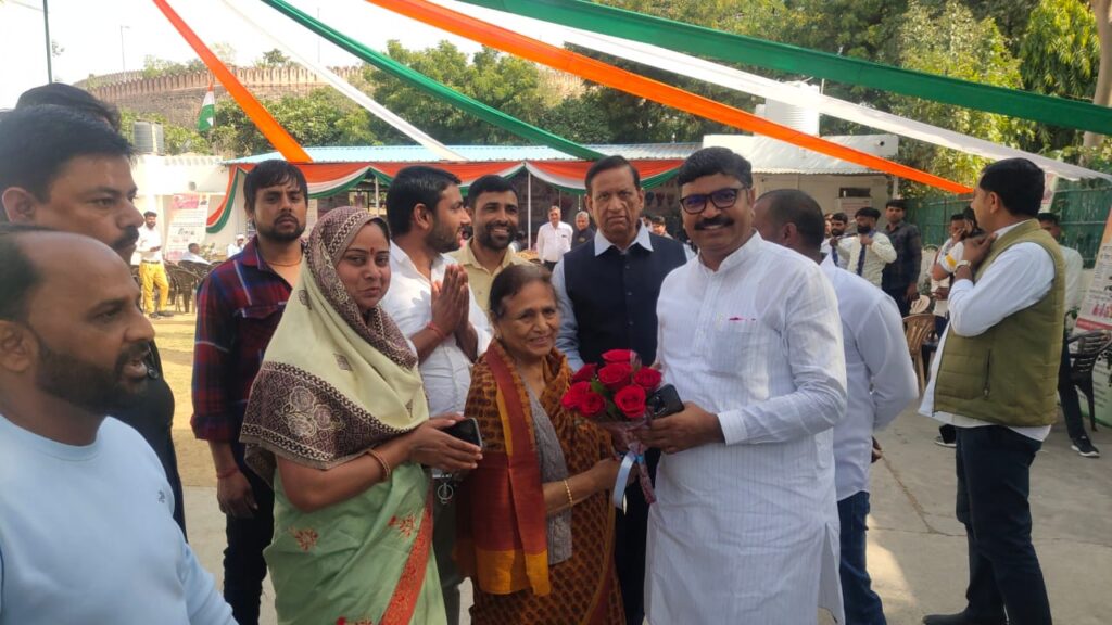 पूर्व केंद्र मंत्री भंवर जितेंद्र सिंह व टीकाराम जूली को गुलदस्ता भेंट कर धन्यवाद किया