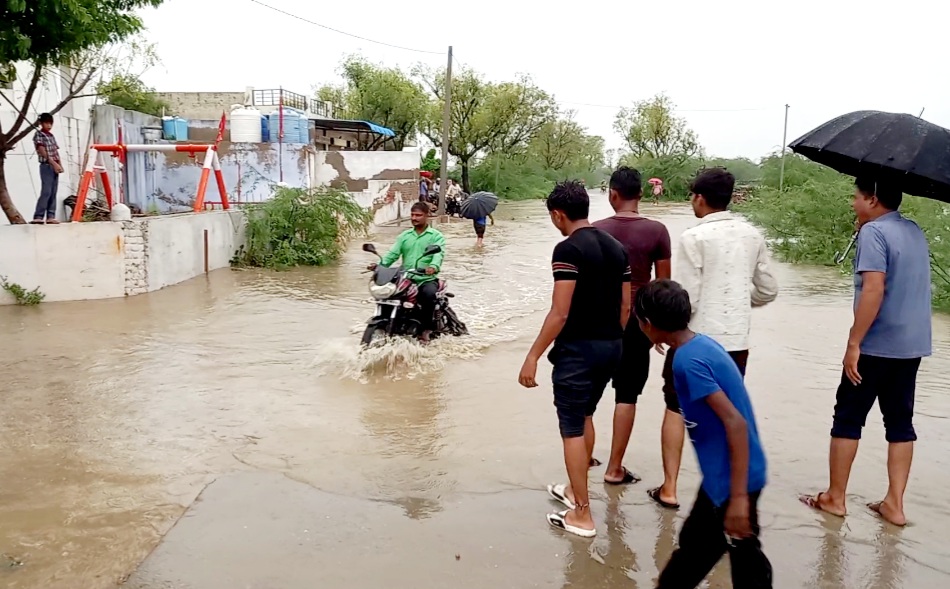 अजमेर । नसीराबाद के देरांठू कस्बे के मुख्य चौराहे पर बनी रपट इस बार अच्छी बारिश से भरकर रपट की चादर चल गई । रपट के निकासी मार्ग पर आगे दीवार बन जाने से पानी अवरुद्ध हो गया । व पानी का निकासी मार्ग कम हो जाने से वर्तमान मे रपट पर दो फीट पानी भरा हुआ है । जिससे शहर से आने जाने वालो के साथ सभी ग्रामीण परेशान हो रखे है । पानी भरे रहने से सुबह विधालय आने जाने बच्चों को भी पानी के अन्दर से होकर आना जाना पडा । अभी पानी श्मशानघाट तक भरा हुआ है । अब भी आगे पानी का रास्ता नही खोलने से ग्रामीणों मे रोष व्याप्त है । ग्रामीणो ने ग्राम पंचायत से शीघ्र इसका समाधान कर पानी निकासी मार्ग को खुलवाने की मांग रखी है । भरे पानी से हादशे की सम्भावना बनी हुई है ।
