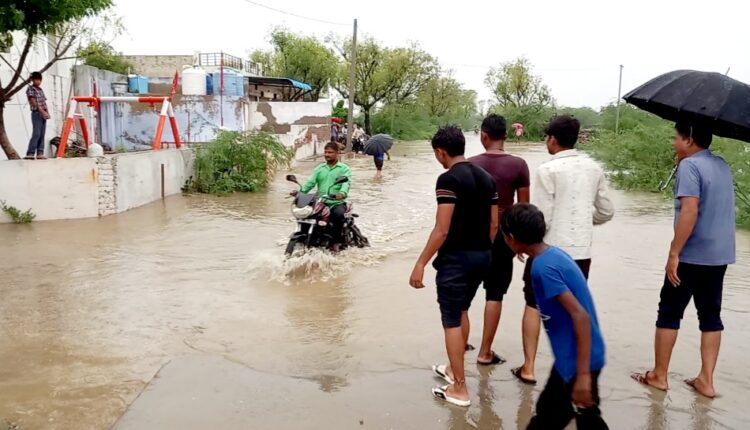 अजमेर । नसीराबाद के देरांठू कस्बे के मुख्य चौराहे पर बनी रपट इस बार अच्छी बारिश से भरकर रपट की चादर चल गई । रपट के निकासी मार्ग पर आगे दीवार बन जाने से पानी अवरुद्ध हो गया । व पानी का निकासी मार्ग कम हो जाने से वर्तमान मे रपट पर दो फीट पानी भरा हुआ है । जिससे शहर से आने जाने वालो के साथ सभी ग्रामीण परेशान हो रखे है । पानी भरे रहने से सुबह विधालय आने जाने बच्चों को भी पानी के अन्दर से होकर आना जाना पडा । अभी पानी श्मशानघाट तक भरा हुआ है । अब भी आगे पानी का रास्ता नही खोलने से ग्रामीणों मे रोष व्याप्त है । ग्रामीणो ने ग्राम पंचायत से शीघ्र इसका समाधान कर पानी निकासी मार्ग को खुलवाने की मांग रखी है । भरे पानी से हादशे की सम्भावना बनी हुई है ।