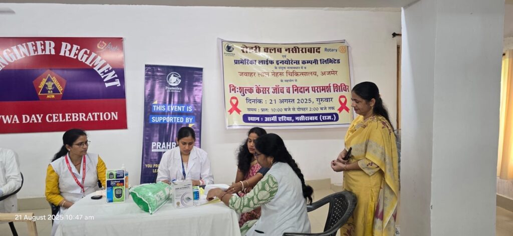 नसीराबाद रोटरी क्लब द्बारा आयोजित शिविर में सैन्य परिवारों की निशुल्क कैंसर जांच