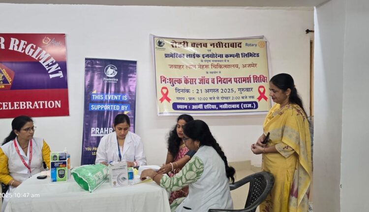 नसीराबाद रोटरी क्लब द्बारा आयोजित शिविर में सैन्य परिवारों की निशुल्क कैंसर जांच