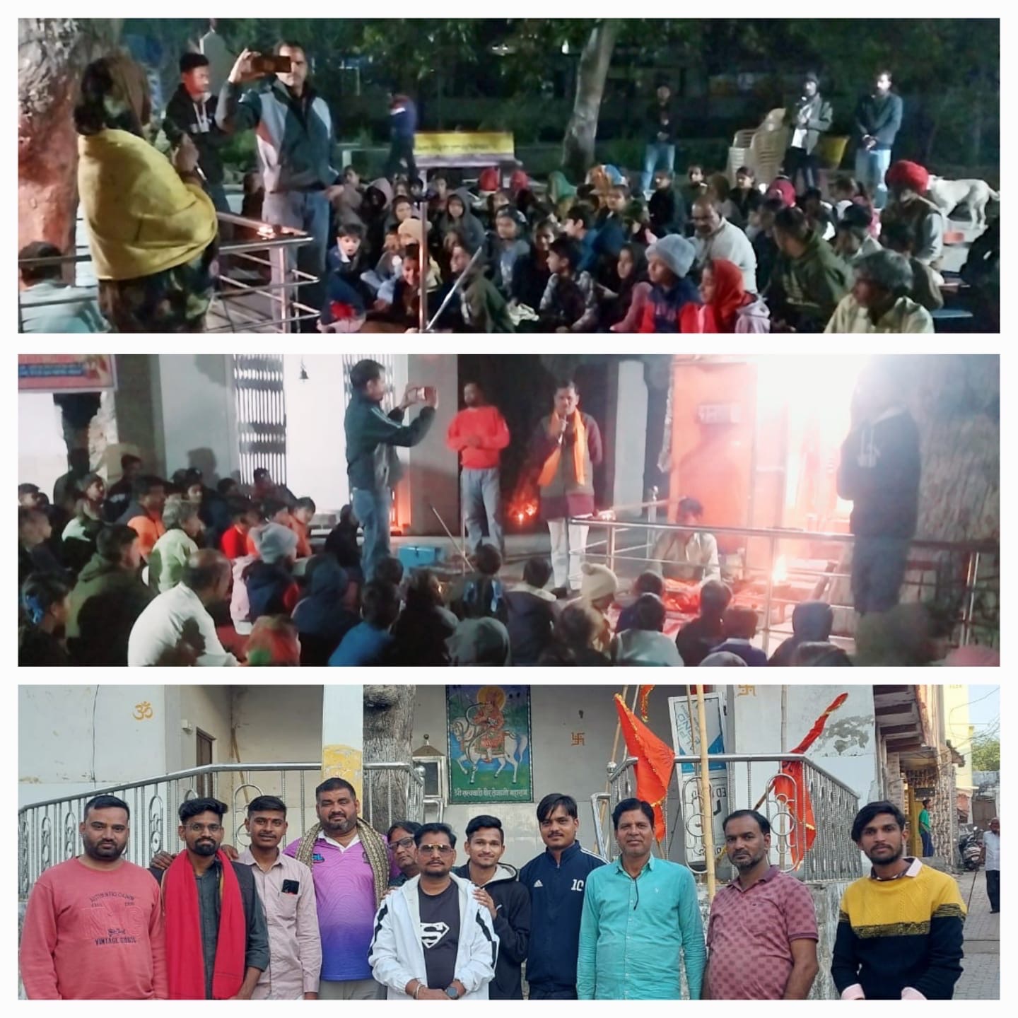 अजमेर। नसीराबाद के निकटवर्ती देरांठू कस्बे में शनिवार को हिन्दू सम्मेलन आयोजित किया गया। कार्यक्रम के पूर्व हिन्दू युवा वाहिनी के सदस्यों एवं ग्रामीणों के द्बारा गाजे बाजे , राष्ट्रीय ध्वज एवं पताकाओं के साथ शौभायात्रा निकाली गई। जो सदर बाजार स्थित धोली हथाई, मेघवंशी मोहल्ला, गवारिया मोहल्ला, कुम्हार मोहल्ला, नायक मोहल्ला, लम्बा बालाजी मंदिर से होते हुए बस स्टैंड स्थित बगीची बालाजी मंदिर पहुंची । जहां हिंदू युवा वाहिनी द्बारा हर मंगलवार व शनिवार को होने वाली सामुहिक पांच बार हनुमान चालीसा का पाठ किया गया। पाठ के पश्चात भारत माता की पूजा की गई। इसके पश्चात मुख्य वक्ता राष्ट्रीय स्वयंसेवक संघ के तख्त सिंह, संजय राठी नसीराबाद, शिक्षा विद सुषमा दाधीच ने हिन्दू धर्म व संस्कृति के प्रति जागरूक करने हेतु कार्यक्रम में आये सभी सनातनी हिन्दूओं जानकारी दी। वह सभी जाति को एकजुट होकर हिन्दू धर्म को मजबूत करने हेतु आग्रह किया। कार्यक्रम में सैकड़ों की संख्या में महिलाएं, पुरुष एवं युवा व बच्चों ने भी शिकरत की । कार्यक्रम में हिन्दू युवा वाहिनी से राजकुमार पाटोदी, संजय सोनी , मगंल वैष्णव, धीरज वैष्णव, पकंज लक्षकार, कैलाश लक्षकार, दिनेश चौधरी, सुरेन्द्र कसाणा, करण चौधरी, सुरेन्द्र राणावत, हंसराज माली, पोकर जी जाट , जगदीश चौधरी, बन्टी वैष्णव, गोविन्द वैष्णव, विनोद सैन , ऋषि दाधीच, सत्तीष दाधीच सहित कई अन्य कार्यकर्त्ता साथ थे । कार्यक्रम में सरपंच विजेन्द्र सिंह राठौड़ ने भी सहभागिता निभाई। कार्यक्रम का मंच संचालन संजय सोनी ने किया। कार्यक्रम के पश्चात सभी को प्रसाद वितरित किया गया।