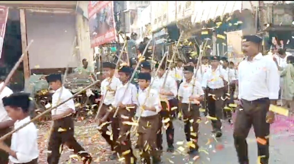 अजमेर। नसीराबाद में रविवार को राष्ट्रीय स्वयंसेवक संघ के स्थापना के शताब्दी वर्ष में प्रवेश करने के अवसर पर राष्ट्रीय स्वयंसेवक संघ द्वारा कस्बे में स्वयंसेवकों की सहभागिता में दो विराट पथ संचलन निकाले गए । जिसमें केशव पथ संचलन जैनाचार्य ज्ञान सागर महाराज की समाधि स्थल से प्रारंभ हुआ, जो गांधी चौक से काली माई रोड होते हुए सूतर खाना मोहल्ला , 12 क्वार्टर, गणेश चौक से होता हुआ पलसानिया रोड से स्टेशन रोड पर प्रवेश किया । जहां से अंबेडकर सर्किल होता हुआ सिटी थाने के पीछे से बिहारी जी रोड से वहां से मुख्य बाजार से होता हुआ मोतीलाल जी की दुकान के पास राजनारायण रोड पर प्रवेश करते हुए सिटी थाने के सामने से लोरी रोड होते हुए शहीद स्मारक से होते हुए स्वास्तिक पान भंडार से हनुमान चौक तक निकाला गया । दूसरा संचलन माधव संचलन एल आई सी मैदान से प्रारंभ होकर सिंधी बाजार होते हुए मुख्य बाजार में पहुंचकर सायरोली बाजार में प्रवेश किया , जहां से फुलागंज बाबा श्याम मंदिर होते हुए शनि मंदिर के सामने से मोची बाजार में से होते हुए पुनः मुख्य बाजार की ओर हनुमान चौक से अनाज मंडी में शिव मंदिर के सामने से होते हुए पोस्टल कॉलोनी से पेट्रोल पंप के सामने से कन्या हितकारिणी स्कूल होते हुए पुनीत मेडिकल के सामने से हनुमान चौक पर पहुंचा । जहां दोनों पथ संचलन केशव और माधव पथ संचलनों का संगम हुआ । दोनों पद संचलन को संघ के गोविंद नारायण जिंदल , छावनी परिषद अधिशासी अधिकारी डॉ नीतिश कुमार गुप्ता , उपखंड अधिकारी देवीलाल यादव , पुलिस उपाधीक्षक जरनेल सिंह , संदीप अग्रवाल ने दोनों पद संचलन का भव्य स्वागत किया । पद संचलन का शहर के मुख्य बाजार व गली मोहल्लों में पुष्प वर्षा कर स्वागत किया गया । दोनों पथ संचलन के संगम के पश्चात दोनों पथ संचलन सामूहिक रूप से हनुमान चौक से मुख्य बाजार होते हुए गांधी चौक से आगे पुनः पूज्य संत ज्ञान सागर महाराज की समाधि स्थल पर पहुंचकर संपन्न हुआ।