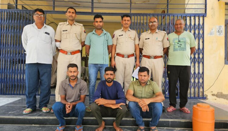 दिव्याग जगत पवन भारद्धाज मुंडावर पुलिश अधीक्षक सुरेन्द्र सिह जिला खैरथल तिजारा के आदेशानुसार सुरेश कुमार आरपीएस उप अधीक्षक वृत किशनगढ़ बास के निकटतम पर्यवेक्षक मै थानाधिकारी नंदलाल जागीड़ के नेतृत्व में गठित टीम द्वारा निरंतर प्रभावी कार्रवाई करते हुए थाना मुंडावर द्वारा वर्ष 2009 से ट्रक एवं शराब लूट के प्रकरण मे फरार चल रहे हैं 2000 रुपये के इनामी बदमाश बाबुलाल डांगी पुत्र देवीलाल डांगी जाति डांगी उम्र 38 साल निवासी गन्दौली थाना घासा जिला उदयपुर एवं वर्ष 2017 से उक्त प्रकरण में फरार तीन तीन हजार रुपये के ईनामी स्थाई वारण्टी भरत उर्फ भुरेलाल पुत्र उदा जाति डांगी उम्र 44 साल निवासी रखियावाल थाना घासा जिला उदयपुर मोहनलाल पुत्र कुका जाति डांगी उम्र 32 साल निवासी रखियावाल थाना घासा जिला उदयपुर को किया गिरफ्तार