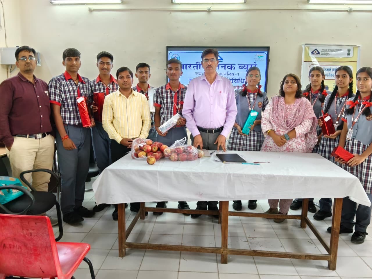 अजमेर। भारतीय मानक क्लब – पी.एम.श्री केंद्रीय विद्यालय ,नसीराबाद में गुरुवार को श्री मनोज ,संसाधक बी आई एस जयपुर एवं सुश्री संजू चौधरी ,संसाधन बी आई जयपुर द्वारा LEARNING SCIENCES VIA STANDARDS पर व्याख्यान दिया गया एवं विद्यालय में गठित मानक क्लब के उद्देश्य एवं भारतीय मानक ब्यूरो के इकोमार्क, हॉलमार्क, रजिस्ट्रेशन नंबर, आईएसआई मार्क की जानकारी देते हुए उत्पादों की शुद्धता और उनके मानकीकरण एवं गुणवत्ता की पहचान पर व्याख्यान दिया।
