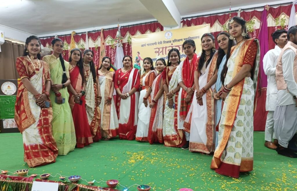 अजमेर । आर्य नारायणी देवी टीटी कॉलेज में आयोजित चार दिवसीय अंतर सदनीय प्रतियोगिताएं “सारंग” के द्वितीय दिवस में यजुर्वेद सदन ने बंगाल राज्य की संस्कृति को प्रस्तुत किया । कार्यक्रम में आर्य नारायणी देवी टीटी कॉलेज के उपनिदेशक डॉ मृत्युंजय शर्मा, हुकुमचंद कॉलेज के उपनिदेशक डॉ निष्काम शर्मा, हुकुमचंद कॉलेज प्राचार्य डॉ रिता पारीक, हुकुमचंद कॉलेज के शिक्षा विभाग से डॉ कल्पना महावर व अन्य प्रवक्ता उपस्थित थे। कार्यक्रम में सर्वप्रथम मां दुर्गा के समक्ष दीप प्रज्वलन किया गया, कार्यक्रम में अतिथि देवो भव की परंपरा का निर्वहन करते हुए प्राचार्य महोदय ने डॉ निष्काम शर्मा , डॉ मृत्युंजय शर्मा , डॉ रिता पारीक का माल्यार्पण कर स्वागत किया। स्वागत की कड़ी के पश्चात एकल नृत्य प्रतियोगिता का आरंभ किया गया । जिसमें पश्चिमी बंगाली संस्कृति की छवि दिखाई गई । एकल नृत्य में कोमल बागड़ी ने मां दुर्गा की स्तुति की और कृष्णा राजपूत ने भी बंगाली नृत्य किया। साथ ही कोमल साहू ने बंगाली बालों की मनमोहक अदाओं को नृत्य द्वारा प्रदर्शित किया । युगल गायन प्रतियोगिता में कमल माली और जनक सिंह ने मनमोहक गान प्रस्तुत किया । इसी के साथ एकल गायन प्रतियोगिता में कमल बागड़ी ने राधा कृष्ण की प्रस्तुति दी और कृष्णा राजपूत ने अयोध्या का श्री राम पधारे गाना प्रस्तुत किया। कार्यक्रम की अगली कड़ी में लघु नाटिका का प्रदर्शन किया गया जो बंगाल की सामाजिक और धार्मिक समस्या से संबंधित था । जिसमे बंगाल में होने वाले विधवा स्त्रियों की दशा ,गरीबी आदि को प्रदर्शित किया सभी प्रतिभागियों ने बढ़-चढ़कर हिस्सा लिया । कार्यक्रम को आगे बढ़ते हुए युगल नृत्य की प्रस्तुति किरण रावत और किरण कुमारी द्वारा दी गई। इसी के साथ कर्मा और मोनिका रावत ने डोला रे डोला पर नृत्य किया। कार्यक्रम में अंतिम प्रस्तुति समूह नृत्य की रही। समूह नृत्य में सभी प्रशिक्षणार्थियों ने मां दुर्गा के समक्ष दुर्गा पूजा का मनमोहक दृश्य नृत्य के द्वारा प्रस्तुत किया । मध्यान्ह के पश्चात ऋग्वेद सदन के प्रशिक्षणार्थियों ने साफा बांधो प्रतियोगिता और थाल सजा प्रतियोगिता में भाग लिया। सामवेद सदन के सभी प्रशिक्षक आर्थियों ने स्टेज साज साज प्रतियोगिता में भाग लिया। व अथर्ववेद सदन को कश्मीर राज्य का खाना बनाना था उन्होंने कश्मीर के विभिन्न व्यंजन परोसे। अंत में निर्णायक मंडल ने सभी का निर्णय किया ।प्राचार्य द्वारा सभी का धन्यवाद ज्ञापन किया गया और द्वितीय दिवस की प्रतियोगिताओं के समापन की घोषणा की गई ।