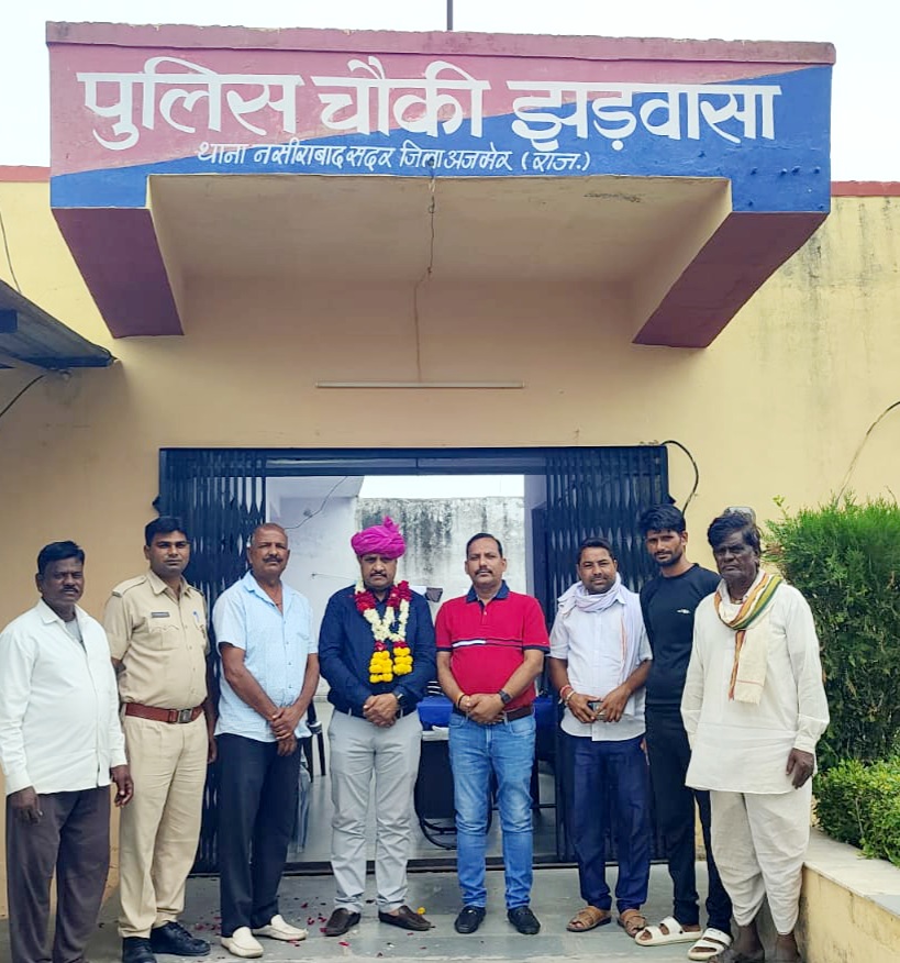 शुक्रवार को झड़वासा पुलिस चौकी पर चौकी प्रभारी के पद पर कार्य कर रहे पुलिस अधिकारी समीर सेन को अपनी सेवा को दो वर्ष पूर्ण करने पर अजमेर गंज थाने में स्थानांतरण होने पर सरपंच भँवर सिंह गौड व झड़वासा ग्राम वासियों ने माला व साफ़ा पहनाकर विदाई दी। पुलिस अधिकारी सेन बताया की आमजन में विश्वास, शांति व सौहार्द बनाये रखना पुलिस का कर्तव्य है। जिसमें मुझे अधीनस्थ सभी गावों का मुझे अच्छा सहयोग रहा , जो मुझे हमेशा याद रहेगा। इसी तरह पुलिस का सहयोग करते रहें , जिससे हम सुरक्षित व प्रेम से रह सकें।