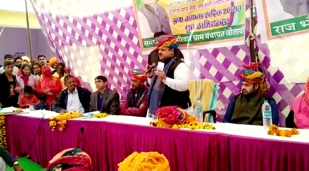 अजमेर । ग्राम सेवा सहकारी समिति जोताया मे अध्यक्ष कक्ष तथा ग्राम पंचायत के विभिन्न विकास कार्यों का केकड़ी विधायक रघु शर्मा ने रविवार को लोकार्पण किया । कार्यक्रम में मुख्य अतिथि पद से बोलते हुए डॉ रघु शर्मा ने कहा कि विकास के लिए धन की कोई कमी नहीं आएगी। केकड़ी क्षेत्र के ग्रामीण इलाका के सभी गांव मेरे अपने गांव है । उन्होंने कहा कि आस-पास के गांव में सड़क व पानी की सभी समस्याओं को जल्द ही निपटाया जाएगा। उन्होंने बताया कि जोताया से जावला मोड तक सड़क निर्माण का कार्य चालू हो चुका है । साथ ही गोयला से मसूदा तक का स्टेट हाईवे का काम भी बहुत जल्द शुरू कर दिया जाएगा। ग्राम विकास अधिकारी जयराम यादव ने बताया कि विधायक शर्मा ने विधायक कोष से निर्मित वार्ड 1 में खुला तिबारा, भेरू खेड़ा में शिव मंदिर के पास सामुदायिक भवन , पिवनिया तालाब पर सामुदायिक भवन ,श्रमिक विश्राम गृह, मजरा खेड़ी में पांच काजवे निर्माण कुल 1 करोड़ 11 लाख के कार्यों का लोकार्पण किया। इससे पूर्व ग्राम में आने पर विधायक शर्मा का जीएसएस अध्यक्ष पप्पू साहू तथा सरपंच राजभवर राठौड़ के सानिध्य में माला व साफा पहनाकर स्वागत किया गया। कार्यक्रम मे उपखण्ड अधिकारी सरवाड़ सुभाष हेमानी,विकास अधिकारी सुधीर पाठक, सराना थाना प्रभारी मोतीलाल शर्मा, प्रधानाचार्य प्रकाश जांगिड़, ग्राम विकास अधिकारी जयराम यादव, जी एस एस अध्यक्ष पप्पू साहू, व्यवस्थापक रंगलाल माली,सहायक कुलदीप सिंह राठौड़, युवा नेता सागर शर्मा,राजेन्द्र भट्ट, नरेश सिंह, सरवाड़ ब्लॉक अध्यक्ष श्याम लाल बैरवा, उपप्रधान प्रतिनिधि जसराज जाट, पूर्व सरपंच चंद्रवीर सिंह राठौड़ , महेंद्र सिंह राठौड़, रज्जाक मंसुरी,गुलाब रायका सहित सेकड़ो लोग उपस्थित थे।