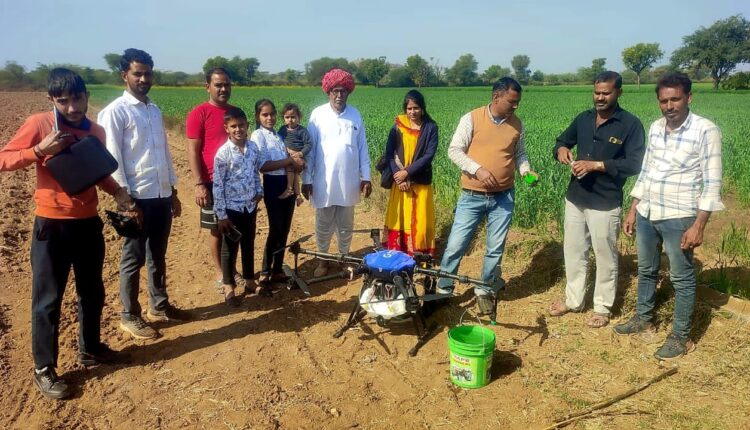 कृषि पर्यवेक्षक इंद्रा गुर्जर व कृषक मित्र तेजमल जाट नें बताया की किसान नारायण जाट की मौजूदगी में खेतों में ड्रोन के माध्यम से नेनो यूरिया के छिड़काव का प्रदर्शन किया गया व ड्रोन ऑपरेटर नें ड्रोन की क़ीमत व भारत सरकार द्वारा ड्रोन के खरीदने पर अनुदान पर व ड्रोन ऑपरेट पर खोलकर जानकारी दी। इस मौक़े पर रामराय जाट, महबूब खान, पुखराज, यादराम,भावना व कार्तिक चौधरी आदि उपस्थित थे ।