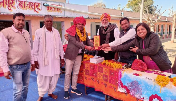 मुंड़वार /सोडावास के समीपवर्ती गांव आलनपुर की राजकीय उच्च माध्यमिक विद्यालय परिसर में भामाशाह लक्ष्मीनारायण जांगिड़ के द्वारा बनाए गए सरस्वती माता के मंदिर का उद्घाटन पूर्व विधायक महिपाल यादव के कर कमलों द्वारा फीता काट कर किया गया। मुख्य अतिथि पूर्व विधायक महिपाल यादव ने अपने सम्बोधन में कहा कि भगवान लक्ष्मीनारायण जांगिड़ जैसे भामाशाहों का भंडार हमेशा भरा रखें जिससे ये लोग समाज हित में योगदान देने के लिए हमेशा तत्पर रहे । मां सरस्वती सभी बच्चों पर अपना आशीर्वाद बनाए रखें जिससे कि बच्चे भविष्य में अपने गांव एवं अपने देश का नाम रोशन करें। विद्यालय प्रधानाचार्य ईशा यादव ने मुख्य अतिथि एवं भामाशाह लक्ष्मीनारायण जांगिड़ का माला एवं साफा पहनाकर सम्मान किया। प्रधानाचार्या ईशा यादव एवं समस्त विद्यालय स्टाफ ने भामाशाह लक्ष्मीनारायण का आभार व्यक्त किया। गांव आलनपुर में मां सरस्वती की झांकी निकाली गई तत्पश्चात विधिविधान एवं मंत्रोच्चार के साथ मंदिर में मां सरस्वती प्रतिमा को स्थापित किया गया। इस अवसर पर जगदीश सरपंच, बलराम चंदेला, मालाराम हवलदार, सुभाष जांगिड़, रामकिशन उप सरपंच, अमीचंद पंच, पवन पंच, रामकुमार जांगिड़, बनवारी हवलदार, सुनील ठेकेदार, हरिराम तंवर, विकास सुठवाल सहित ग्रामीण एवं छात्र – छात्राएं मौजूद रहे