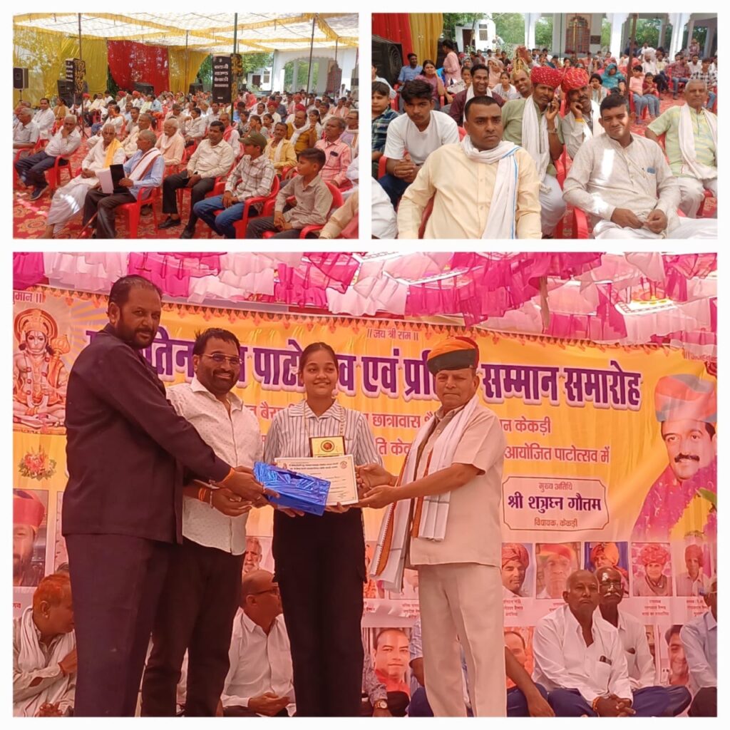 वैष्णव बैरागी समाज केकड़ी द्वारा आयोजित मारुतिनंदन पाटोत्सव में प्रतिभावाओ हुआ सम्मान, विधायक शत्रुघ्न गौतम ने छात्रावास के विकास हेतू 20 लाख की करी घोषणा