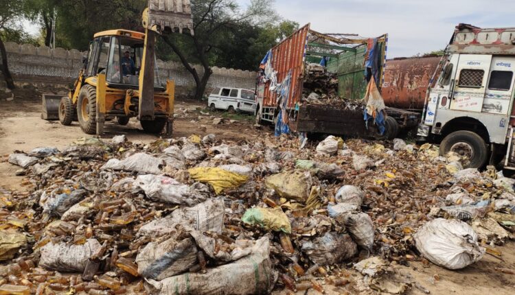 अजमेर । पुलिस मुख्यालय राजस्थान जयपुर द्बारा मालखाना निस्तारण हेतू चलाये जा गये विशेष अभियान के तहत शुक्रवार को राजस्थान प्रशासनिक सुधार(अनु.) विभाग की आज्ञा से एंव आबकारी आयुक्त के परिपत्र (ई.सी-57) प. जिसमे सदस्य सचिव श्री मति तारामती वैष्णव जिला आबकारी अधिकारी अजमेर , श्री मति अंशुल आमेरिया उपखण्ड अधिकारी नसीराबाद प्रतिनिधि जिला कलेक्टर अजमेर , घनश्याम शर्मा अतिरिक्त पुलिस अधीक्षक केकडी प्रतिनिधि जिला पुलिस अधीक्षक अजमेर , मोनू जैन उप कोषाधिकारी प्रतिनिधि कोषाधिकारी कोषालय अजमेर , श्री मति पूनम भरगड वृत्ताधिकारी नसीराबाद तथा महावीर प्रसाद थानाधिकारी नसीराबाद की उपस्थिति मे न्यायालय अतिरिक्त मुख्य न्यायिक मजिस्ट्रेट नसीराबाद के आदेशानुसार पुलिस थाना नसीराबाद के आबकारी अधिनियम के 35 प्रकरणों मे जब्तशुदा हरियाणा व राजस्थान निर्मित करीबन 85 हजार लीटर देशी व अग्रेंजी शराब को थाना परिसर मे ही जेसीबी से गडडा खोद कर जेसीबी व रोलर की सहायता से नष्ट कराया ।