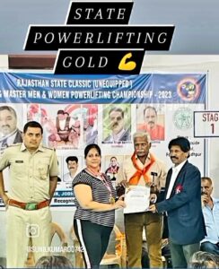 जोधपुर मे आयोजित 11वी राज्य स्तरीय क्लासिक पावर लिफ्टिंग प्रतियोगिता मे नसीराबाद की सुरभि ने जीता स्वर्ण पदक