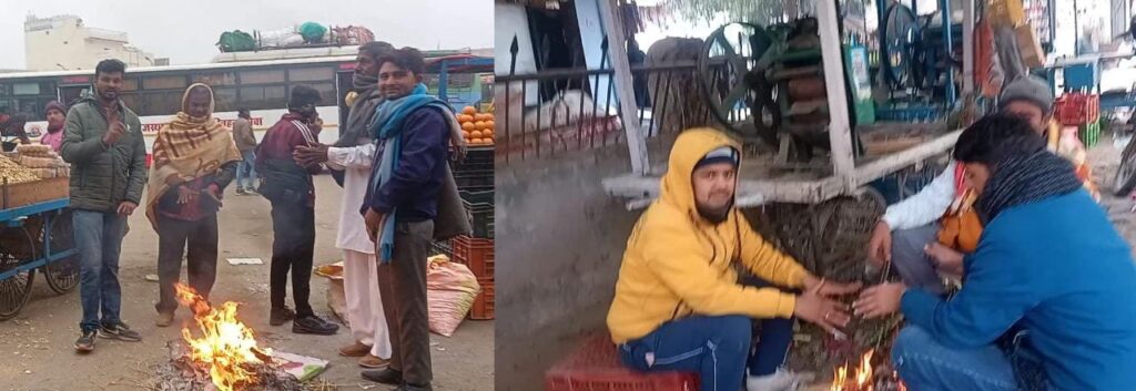 फोटो- ठंड से बचाव के लिए अलाव तापते लोग
