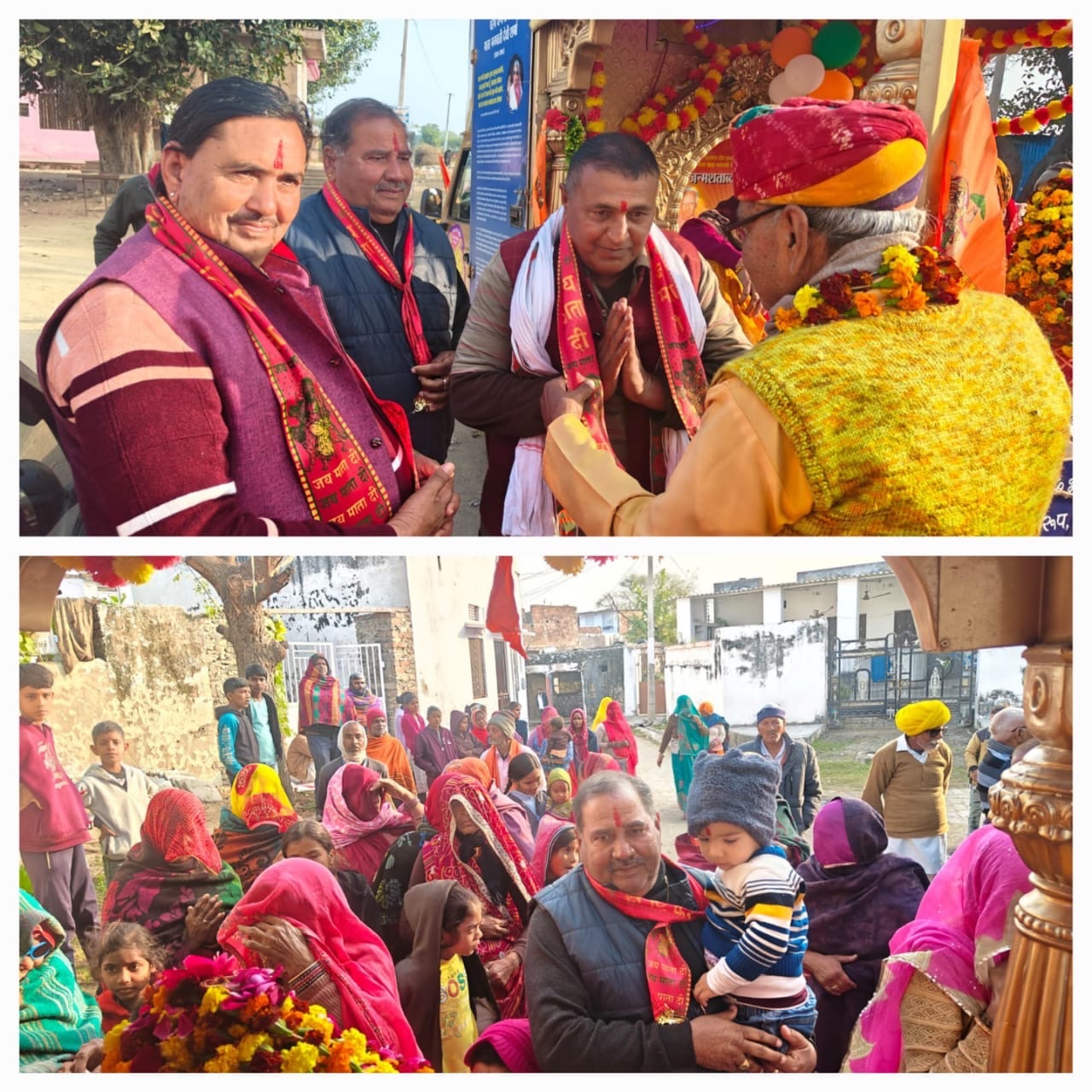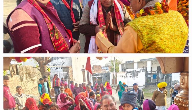 राष्ट्र जागरण ज्योति कलश रथयात्रा का धार्मिक स्थल रामपुरा तेजाजी धाम में हुआ भव्य स्वागत