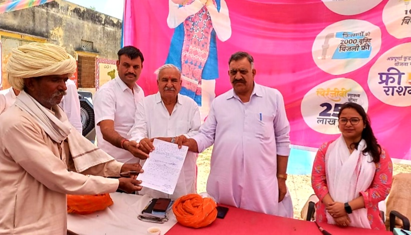 अजमेर । प्रशासन गांवो के संग अभियान 2023 के तहत लग रहे महंगाई राहत शिविर के अन्तर्गत गुरुवार को श्री नगर पंचायत समिति के ग्राम तिहारी मे लगे दो दिवसीय शिविर मे प्रथम दिन पूर्व विधायक रामनारायण गुर्जर व दितिय दिन पूर्व विधायक व पीसीसी सचिव महेन्द्र सिंह गुर्जर , डेयरी अध्यक्ष रामचन्द्र चोधरी ने शिकरत की । शिविर की अध्यक्षता उपखण्ड अधिकारी अशुंल आमेरिका ने की । शिविर मे गुर्जर व चौधरी ने लाभार्थियों से रुबरु होकर संवाद किया व समस्याओं का निवारण करते हुए सरकार द्बारा जारी लाभ की योजनाओं के पत्र , प्रमाण प्रत्रादि आदि वितरण किये । शिविर मे 22 मृत्यु प्रमाण पत्र , 27 जन्म प्रमाण पत्र , 7 पटटो का वितरण , स्वच्छ भारत मिशन के अन्तर्गत 20 शौचालय , 15 प्रोत्साहन राशि की स्वीकृति , 23 मस्टररोल , 12 परिसम्पत्तियों का इन्दाज , राजकीय /सार्वजनिक भूमि आवंटन के प्रस्ताव , 80 प्रमाण पत्र , 5 सामाजिक सुरक्षा पेंशन , 2 पालनहार आवेदन , 8 हेडपम्प मरम्मत , 231 पशुओं की चिकित्सा , 162 व्यक्तियो की स्वास्थ्य जांच एंव 56 व्यक्तियो का आर्युवेदिक परामर्श दिया गया । महंगाई राहत शिविर मे 784 लाभार्थियों ने पंजीयन कराया । शिविर मे समस्त विभागों के अधिकारीगण उपस्थित रहे ।