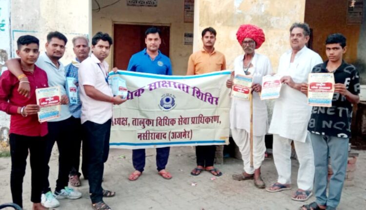 अजमेर । जिला विधिक सेवा प्राधिकरण अजमेर सचिव रामपाल जाट ( अपर जिला एवं सेशन न्यायाधीश अजमेर) के आदेशानुसार तालुका नसीराबाद के पीएलवी भरत प्रजापत ने ग्राम पंचायत देराठू में विधिक जागरूकता शिविर का आयोजन किया । शिविर मे एडवोकेट रवि चौधरी के साथ ग्राम वासियों को पर्यावरण की रक्षा के लिए प्रोत्साहित करने हेतु जानकारी दी विश्व भर में हर साल 5 जून को विश्व पर्यावरण दिवस मनाया जाता है। इस दिन लोगों को कई कार्यक्रमों के जरिए प्रकृति को संरक्षित रखने और इससे खिलवाड़ न करने के लिए जागरूक किया जाता है। इन कार्यक्रमों के जरिए लोगों को पौधे लगाने, पेड़ों को संरक्षित करने, हरे पेड़ न काटने, नदियों को साफ रखने और प्रकृति से खिलवाड़ न करने जैसी चीजों के लिए जागरूक किया जाता है।