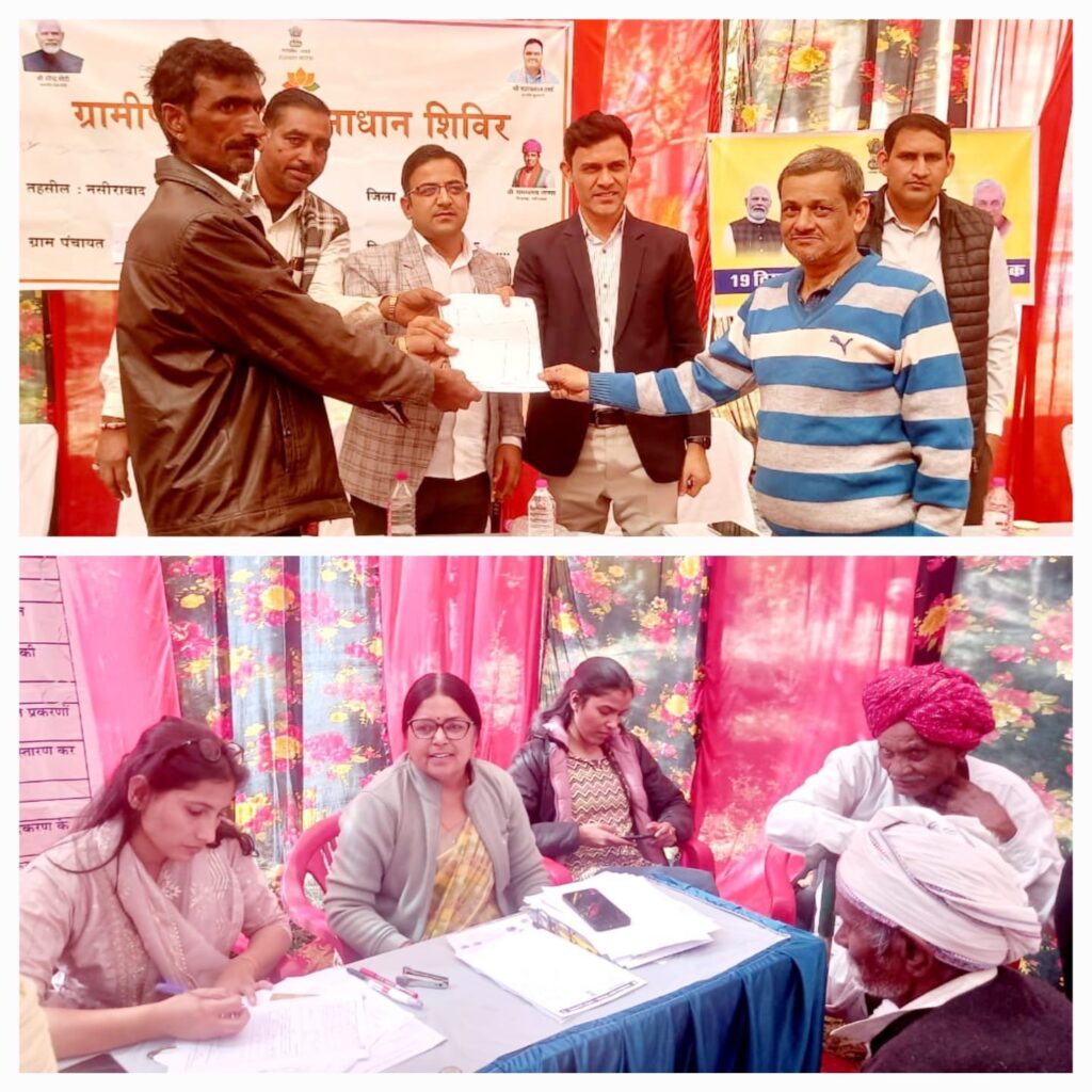 अजमेर। राज्य सरकार के 2 वर्ष पूर्ण होने पर ग्राम पंचायत लवेरा में ग्रामीण समस्या समाधान सिविल 2025 के आयोजन अटल सेवा केंद्र पर किया गया। शिविर में आमजन की समस्याओं का मौके पर ही निस्तारण किया गया और लोगों को राहत प्रदान की गई। शिविर का उपखंड अधिकारी नसीराबाद देवी लाल यादव ने अवलोकन किया तथा मौजूद सभी विभागो के अधिकारी और कर्मचारियो को सरकार की जनकल्याणकारी योजनाओं के प्रचार – प्रसार तथा आमजन की समस्या का सीधा निस्तारण करने के लिए निर्देश दिए । शिविर के दौरान चिकित्सा राजस्व विभाग सहित अन्य विभागो द्वारा लोगों को राहत प्रदान की गई। शिविर के दौरान नायब तहसीलदार अजयपाल , गिरदावर ज्योत्सना शर्मा , पटवारी आकांक्षा , मीनाक्षी जाखड़ ,विकास अधिकारी श्रीनगर महेश चौधरी, लवेरा एलडीसी नंदकिशोर जांगिड़, प्रशासक समिति सदस्य कानाराम , ग्राम पंचायत प्रशासक शंकर लाल जाट, पूर्व उपसरपंच हेमराज चौधरी सहित अन्य विभागों के अधिकारी कर्मचारी मौजूद थे। शिविर के दौरान पात्र लोगों को सरकार की विभिन्न जनकल्याणकारी योजना में लाभान्वित किया । इस दौरान मोडी निवासी जगदीश रामदयाल, मेघवंशी का खातेदारी भूमि के रिकॉर्ड में नाम शुद्धिकरण किया गया । शिविर में रामदेव गोमा, ग्राम गादेरी को पट्टा वितरित किया गया।