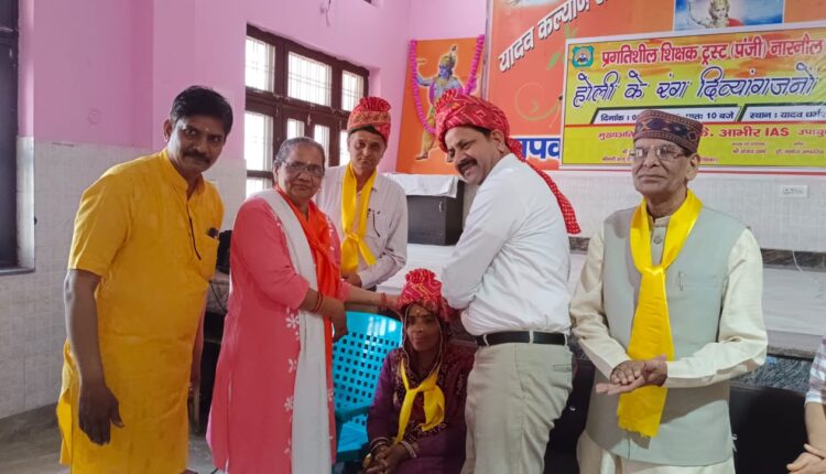 प्रगतिशील शिक्षक ट्रस्ट नारनौल की और से दिव्यांगजनों के साथ मिलकर होली के रंग – दिव्यंगों के संग का आयोजन स्थानीय यादव धर्मशाला में आयोजित किया गया l इस विषय में जानकारी देते हुए ट्रस्ट के अध्यक्ष एवं कार्यक्रम संयोजक संजय शर्मा ने बताया होली के रंग – दिव्यंगों के संग कार्यक्रम का आयोजन दिव्यांग साथियों के उत्साहवर्धन और सकारात्मकता के संचार के दृष्टिगत आयोजित किया गया था l आज कार्यक्रम में मुख्य अतिथि के रूप में जिला उपायुक्त जेके आभीर उपस्थित रहे जबकि विशिष्ट अतिथि के रूप में विशेष योग्य छात्र देवांश शर्मा एवं दोनों पैर से दिव्यांग महिला संजू दोचाना शामिल रहे l इसके अलावा खंड शिक्षा अधिकारी अशोक शर्मा वरिष्ठ साहित्यकार रामनिवास मानव एवं पूर्व बाल कल्याण अधिकारी विपिन शर्मा भी विशिष्ठ अतिथि के रुप में उपस्थित रहे l कार्यक्रम की अध्यक्षता ट्रस्ट के अध्यक्ष संजय शर्मा ने की l इस अवसर पर बोलते हुए जिला उपायुक्त ने कहा कि दिव्यांगता को किसी कमी के नजरिए से नहीं बल्कि विशेष योग्यता के नजरिए से देखे जाने की आवश्यकता है l सकारात्मक सोच दिव्यांगता को कोसों दूर ले जाती हैं l प्रकृति ने हर कमी के साथ एक अवसर उत्पन्न किया है l हमें उस अवसर को पहचानना चाहिए उपायुक्त ने कहा कि दिव्यांगजन पूरे मनोयोग से अपनी जीवन शैली को रचनात्मक बनाएं l ट्रस्ट के अध्यक्ष संजय शर्मा ने कहा कि दिव्यांगों की सेवा एक दायित्व से बढ़कर कुछ नहीं है समाज में जो वर्ग प्राकृतिक आपदाओं बीमारी अथवा दुर्घटनाओं के कारण पीछे रह गया है, उस वर्ग को साथ लेकर चलना हम सबकी जिम्मेदारी है के हितों के लिए कार्य करने का जज्बा हरियाणा सरकार ने दिया है, वह उस पर खरा उतरने का प्रयास करेंगे l सरकारी योजनाओं का लाभ उठाएं और अपने जीवन को आसान बनाएं l कार्यक्रम में मंच संचालन डॉ जितेंद्र भारद्वाज ने करते हुए होली पर शानदार कविता प्रस्तुत की l इस होली मिलन समारोह में रामनिवास मानव, सरदार सुरजीत सिंह अरोड़ा. सरदार गुरमेल सिंह, विपिन शर्मा, नरोतम सोनी आदि ने भी अपने वक्तव्य के माध्यम से दिव्यांग लोगों को होली की हार्दिक शुभकामनाएं दी l