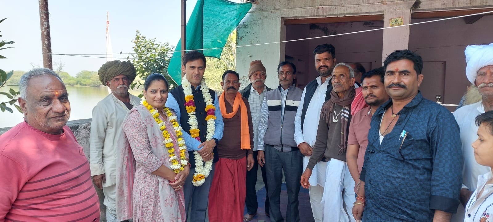 समिति के सभी सदस्यों को मन्दिर दर्शन को आये नसीराबाद उपखण्ड अधिकारी देवीलाल यादव ने माला पहनाकर स्वागत किया।