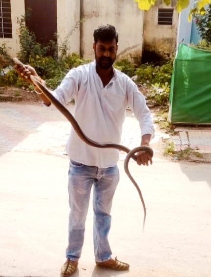 नसीराबाद नगरपालिका में एक घर में निकला घोड़ा पछाड़ सर्प, सर्प रक्षक शेखावत ने पकड़कर छोड़ा जंगल में