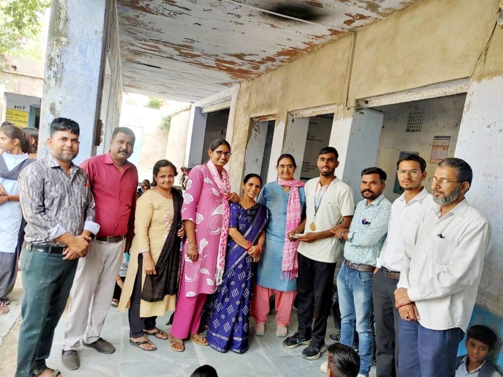 अजमेर। कृष्ण केशव कान्वेंट सीनियर सेकेंडरी स्कूल पीसांगन में आयोजित 69 वी जिला स्तरीय एथलेटिक्स प्रतियोगिता में राजकीय उच्च माध्यमिक विद्यालय देराठू के होनहार छात्र निर्मल लोहार ने अंडर 19 आयु वर्ग में 400 मीटर हर्डल दौड़ में गोल्ड मेडल जीत कर स्थानीय विद्यालय और गांव का नाम रोशन किया । इस अवसर पर विद्यालय परिवार ने विद्यार्थी का स्वागत अभिनंदन कर आशीर्वाद दिया। कार्यवाहक संस्था प्रधान सुषमा सोनी ने बताया कि संस्था प्रधान नवीन सागर सोनी के मार्गदर्शन व शारीरिक शिक्षक बाबूलाल जाट के सानिध्य में बच्चे ने प्रतियोगिता में भाग लिया और गोल्ड मेडल प्राप्त किया । इस अवसर पर विद्यालय परिवार के समस्त शिक्षक गण मोतीलाल, अंजना शर्मा, सीमा जयंत, रुचि अग्रवाल, रीतू देतवाल, सरोज नेहा टेपण, गोरंती मीणा , मो इरफान शहाबुद्दीन, अशोक कुमार, ताराचंद माली, मनोज शर्मा, ज्योति पुरोहित , रवि ,सोनू छिपा, सोनिया मित्तल , शंकर जाट आदि उपस्थित रहे।