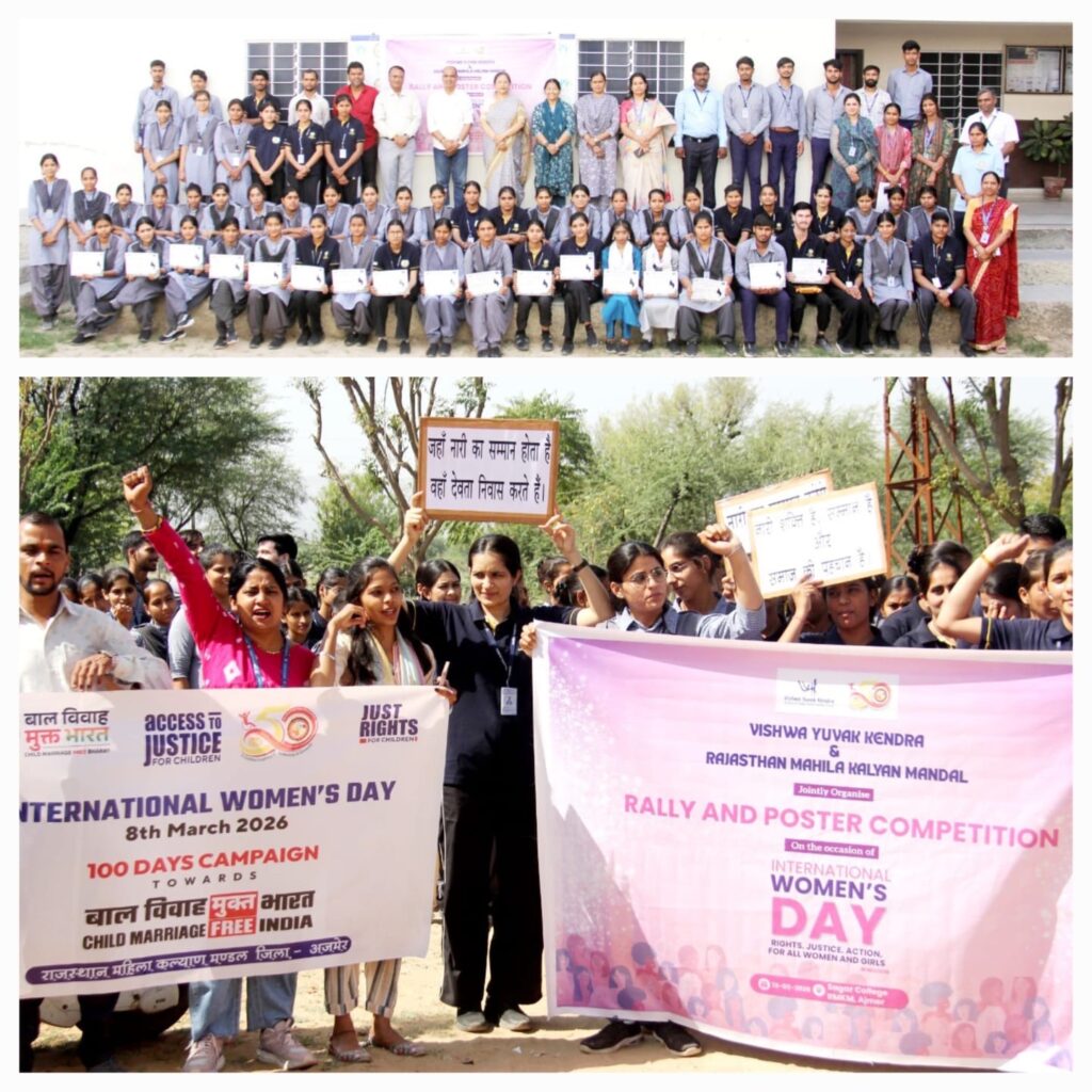 अजमेर। राजस्थान महिला कल्याण मण्डल एवं विश्व युवक केंद्र नई दिल्ली के संयुक्त तत्वाधान में शुक्रवार को कॉलेज के विद्यार्थियों के साथ अंतर्राष्ट्रीय महिला दिवस समारोह का भव्य आयोजन किया गया। कार्यक्रम की मुख्य अतिथि मनीषा जौहरी (प्रधानाचार्य, संस्कृति स्कूल, अजमेर) एवं विशिष्ट अतिथि राकेश कुमार कौशिक, डॉ. भगवान सहाय शर्मा, पदमा चौहान, ईश्वर शर्मा आदि द्वारा बाबूजी की प्रतिमा पर दीप प्रज्ज्वलित कर एवं पुष्प अर्पित कर कार्यक्रम का शुभारंभ किया गया।
