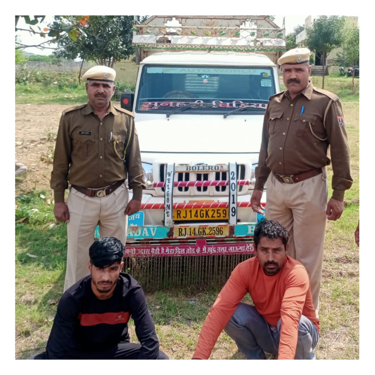 ततारपुर भिवाड़ी पुलिस अधीक्षक अनिल कुमार बेनीवाल आईपीएस के निर्देशन एवं जगराम मीणा अतिरिक्त पुलिस अधीक्षक नीमराणा जयप्रकाश बेनीवाल व्रत अधिकारी व्रत किशनगढ़ बास सुपर विजन में शेर सिंह थाना अधिकारी पुलिस थाना ततारपुर के नेतृत्व में टीम गठित द्वारा गौ तस्करों की धरपकड़ एवं गोवंश पर अंकुश के तहत कार्रवाई करते हुए गौ तस्कर नेमीचंद व राकेश को तीन गोवंश से भाई पिकअप वाहन सहित मुलजिम को किया गिरफ्तार