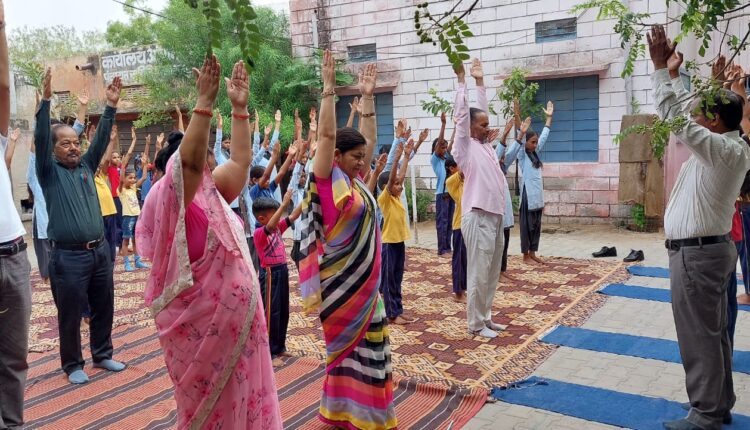 अजमेर । नसीराबाद के निकटवर्ती ग्राम देरांठू के महात्मा गांधी (अंग्रेजी माध्यम )विद्यालय व माध्यमिक विद्यालय में शुक्रवार को राजस्थान सरकार एवं शिक्षा विभाग द्वारा निर्देशित दसवां योग दिवस मनाया गया । जिसमें छात्र-छात्राओं एवं उपस्थित स्टाफ सदस्यों द्वारा विभिन्न प्रकार के योगासन किए गए। महात्मा गांधी अंग्रेजी विधालय में प्रधानाचार्य अनिल गोयल ने छात्र-छात्राओं एवं स्टाफ सदस्यों को संबोधित किया और बताया कि हमारे देश के यशस्वी प्रधानमंत्री श्री नरेन्द्र मोदी ने स्वस्थ भारत और स्वच्छ भारत अभियान पर विशेष रूप से कार्य किया है । योग को अन्तर्राष्ट्रीय स्तर पर प्रसिद्धि प्रदान की। और बताया कि प्रतिदिन हम सब को योग करना चाहिए।इस अवसर पर अनिल जैन,सुल्तान खोकर ,केशर सिंह,सुशील कपूर, गायत्री सोनी, चेतना शर्मा ,आशीष दाधीच, राम सिंह,मोहन प्रजापत के साथ ही अभिभावक गण एवं ग्राम देरांठू के सम्मानित नागरिक गण उपस्थित थे।