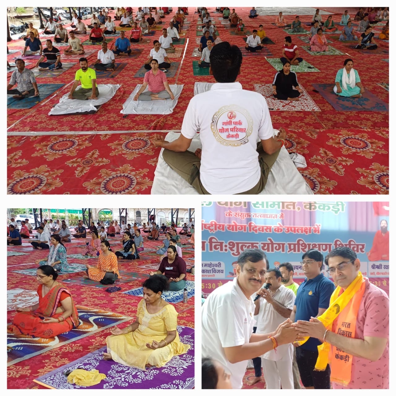 अंत में भारत विकास परिषद अध्यक्ष बहादुर सिंह शक्तावत एवं सचिव रामनिवास जैन ने सभी प्रतिभागियों को योग साधना में उत्साहपूर्वक भाग लेने हेतु धन्यवाद ज्ञापित करते हुए 21 जून के मुख्य कार्यक्रम में सहभागिता की अपील की। मीडिया प्रभारी दिनेश वैष्णव ने बताया शिविर के अंतिम दिन सभी लोग राज्य सरकार के निर्देशानुसार समूहिक योगाभ्यास करेंगे।