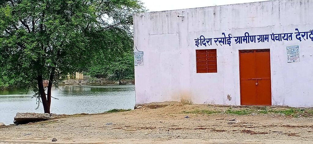 अजमेर । मुख्य मंत्री अशोक गहलोत की पहल पर ग्रामीण क्षेत्र में भी जन कल्याणकारी योजना के तहत नसीराबाद के निकटवर्ती देरांठू ग्राम पंचायत क्षेत्र में इंदिरा रसोई घर संचालित किया जाना है। जिस पर ग्राम पंचायत देरांठू ने चौराहे पर करीब दस बरस पहले यात्रियों के विश्राम के लिए बनाई गई विश्राम स्थली भवन की रंगाई पुताई कराकर आनन फानन में इस भवन पर इंदिरा रसोई ग्रामीण देरांठू का साईन बोर्ड लगाकर रसोई घर चालू करना चाह रही है।