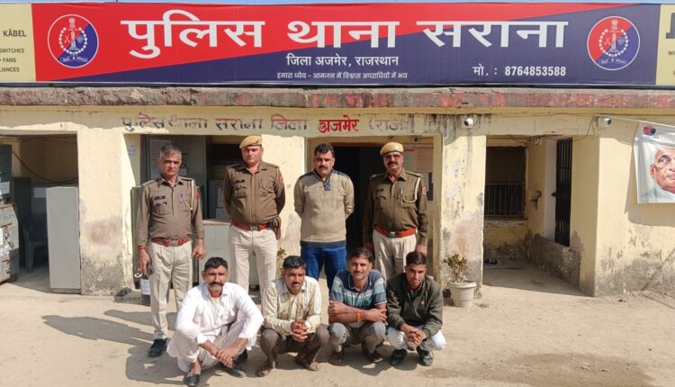 सराणा पुलिस थाना क्षेत्र के कोटड़ी में जमीनी विवाद को लेकर दो पक्षों में हुआ झगड़ा, पुलिस ने चार लोगों को शान्ती भंग में किया गिरफ्तार