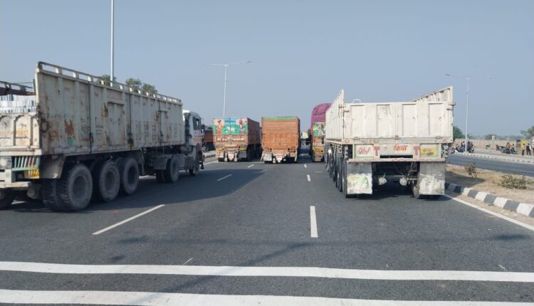 नसीराबाद हाईवे 48 पर ट्रक ड्राईवरो ने नये बनाये कानून को लेकर लगाया जाम