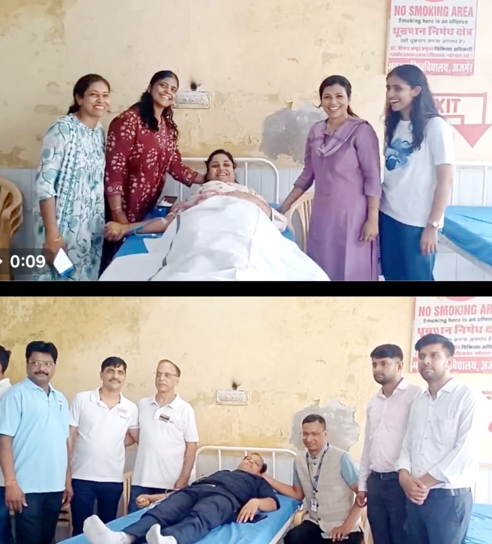 रोटरी क्लब व एचडीएफसी बैंक के संयुक्त तत्वावधान में नसीराबाद के राजकीय चिकित्सालय में लगाया रक्तदान शिविर, शिविर में 97 यूनिट रक्त हुआ एकत्र