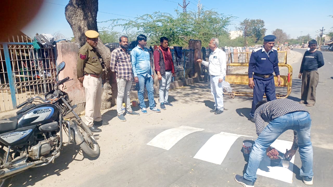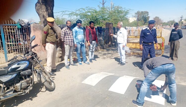 नसीराबाद सीटी थाना के आस पास बने स्पीड ब्रेकरो पर की सफेद मार्किंग