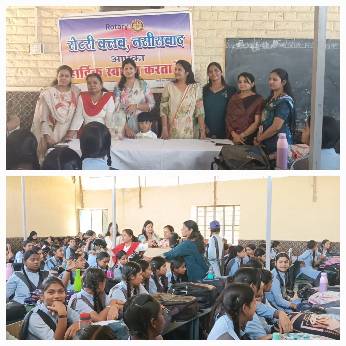 इसी उद्देश्य से रोटरी क्लब नसीराबाद द्वारा राजकीय उच्च माध्यमिक बालिका विद्यालय, नसीराबाद में बालिकाओं के लिए निःशुल्क सेनिटरी पैड वितरण एवं स्वच्छता जागरूकता कार्यक्रम आयोजित किया गया। जिसमें स्कूल छात्राओं को निःशुल्क सैनिटरी पैड बाटे गए और स्वच्छता रखने वो स्वस्थ रहने के लिए प्रेरित किया गया । इस महत्वपूर्ण सामाजिक और नेक कार्य को रोटरी परिवार की